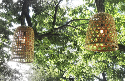 Reed Cylinder Basket Lantern w/ Pendant Light