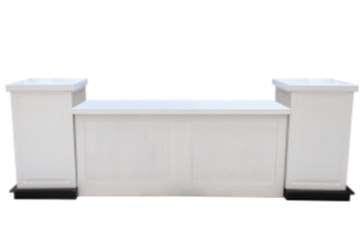 Our white craftsman style bars are a perfect addition for weddings, corporate events, and special events, and can give a stylish look to any occasion. They feature clean lines and beadboard details.