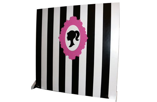 This stage wall is perfect for many different events. It can be used as a background in a show or performances, a background in a photo op, or just as decoration at an event. The bold black and white stripe pattern will make a statement at your next event.